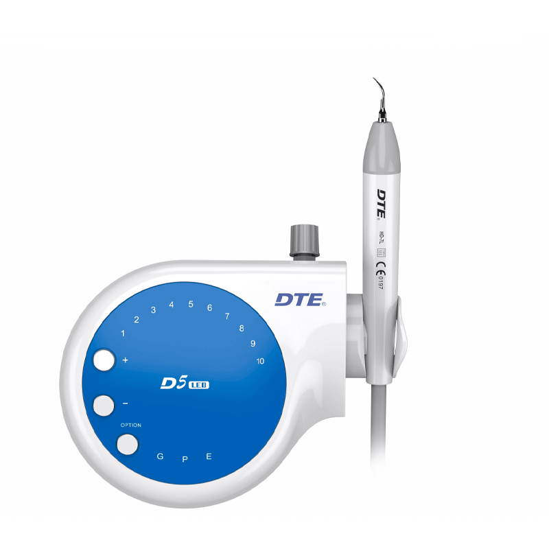 The DTE D5 Ultrasonic Piezo Scaler LED is an advanced dental cleaning and scaling device equipped with LED lighting and includes 6 interchangeable tips.