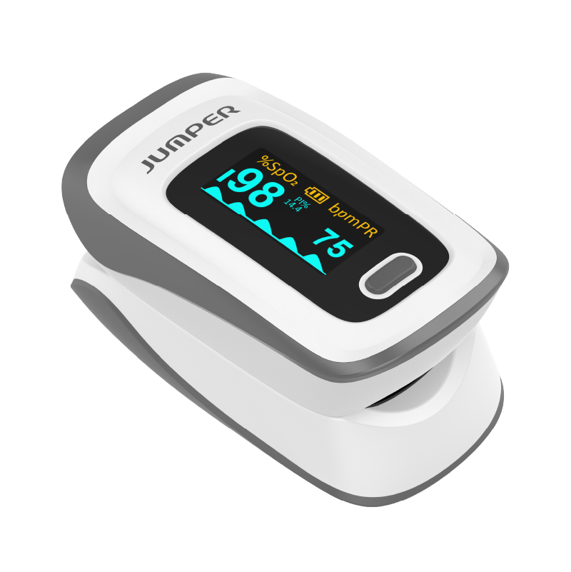 The JPD-500E is a fingertip pulse oximeter that measures blood oxygen levels and heart rate, equipped with an OLED display and alert functions, suitable for home use.
