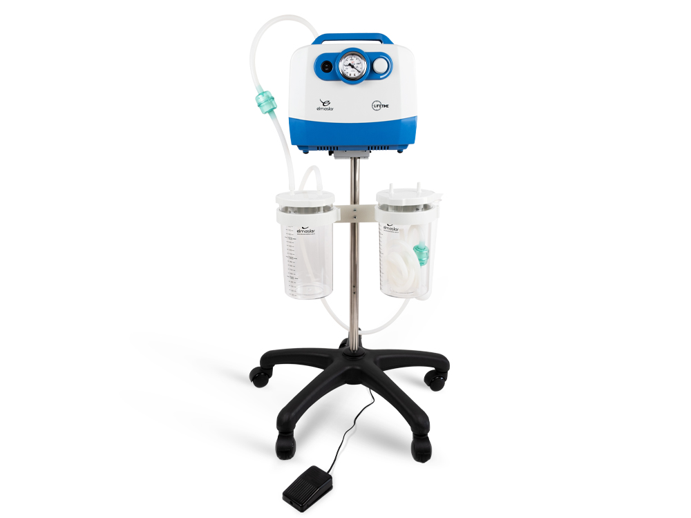 The Lifetime SA02PT/SA03PT Portable Surgical Aspirator is designed to evacuate fluid accumulated in the areas operated on during surgical procedures. It is suitable for general surgery, gynecology, and liposuction applications. This device features easy operation with a one-button start and a sensitive adjusting knob for precise pressure control. Its ergonomic design and lightweight construction make it ideal for both home and clinical use. The aspirator offers high vacuum power, making it perfect for clinical settings. Optional features, such as a foot switch, enhance ease of use during procedures.